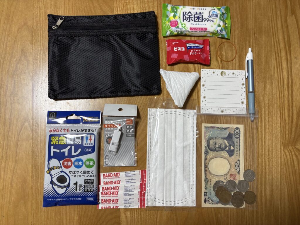 外出時にカバンに入れておく防災ポーチも準備しておこう